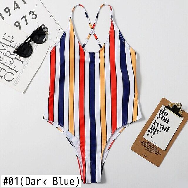 送料無料 ストライププリントワンピース水着2021セクシークロスバックレス水着女性プッシュアップモノキニ水着サマービーチウェアバザー 夏物 AE36655554082853353