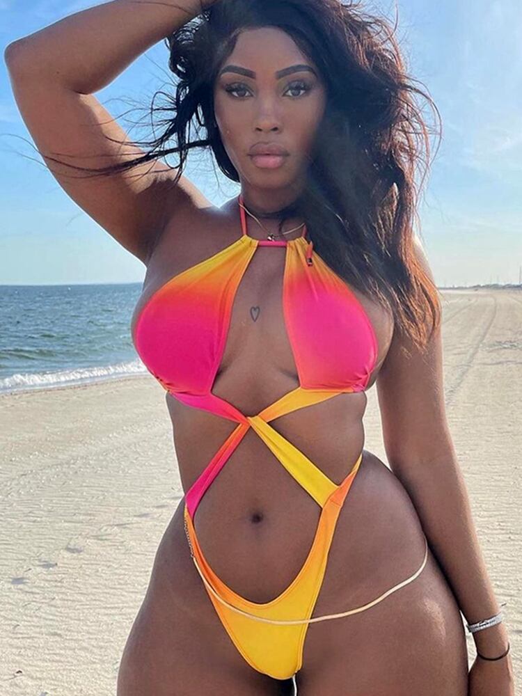 送料無料 2022セクシーな絞り染めのプリント水着女性ワンピース水着中空アウト水着サマービーチウェアバックレスモノキニ 夏物 AE3665555384364585