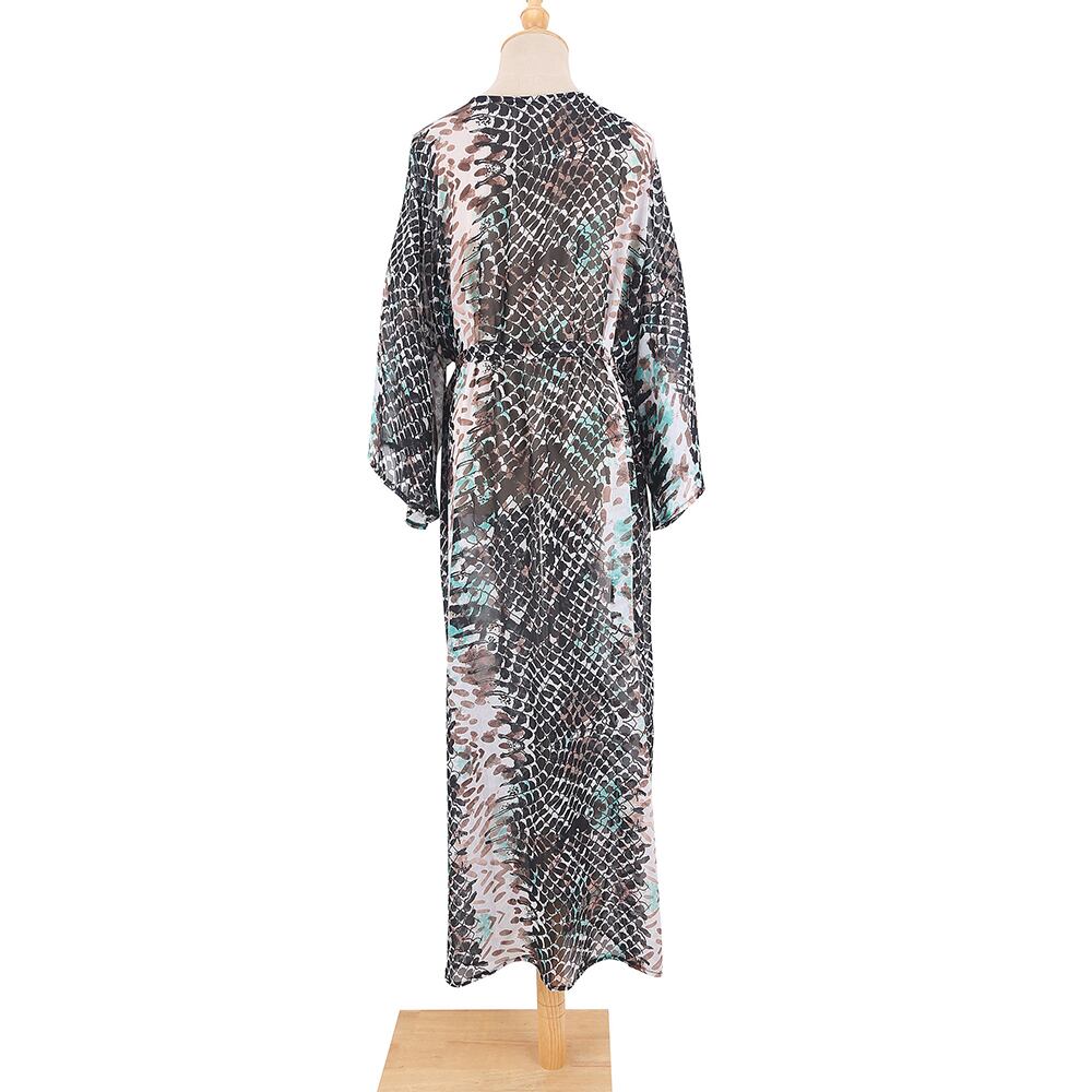 送料無料 2021シフォンスネークスキンプリントビーチカバーアップ女性ビキニカバーアップセクシーカーディガンビーチドレスブラウスチュニックサマービーチウェア 夏物 AE36655580285413321