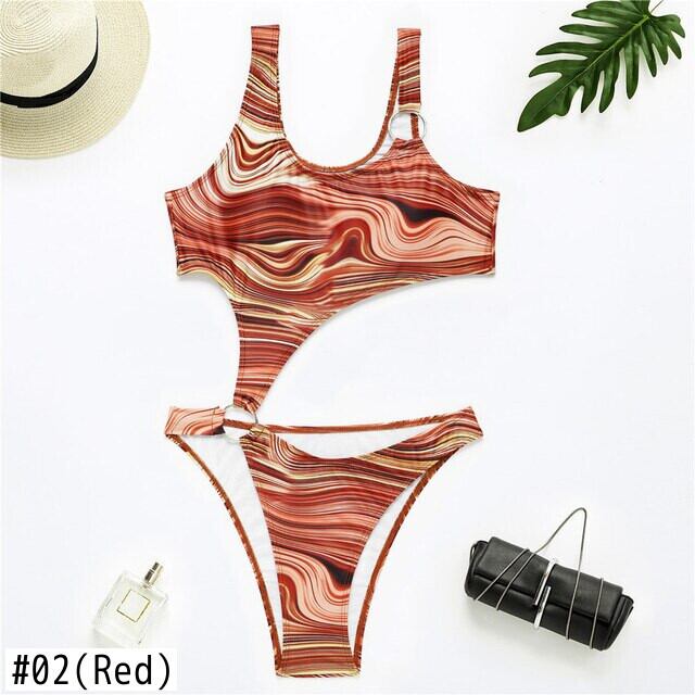 送料無料 2021ストライププリントワンピース水着セクシー中空アウト水着女性水着ビーチウェアプッシュアップモノキニ水着 AE3665556679872757