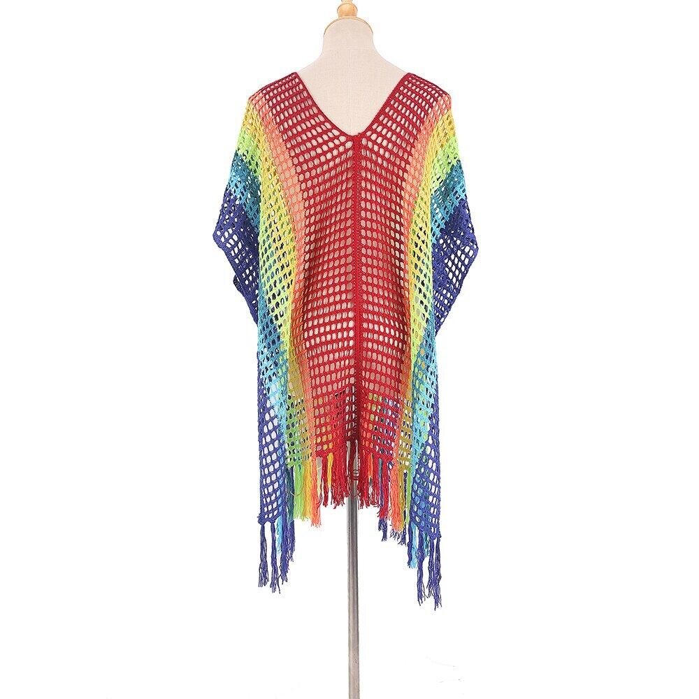 送料無料 カラフルな中空のかぎ針編みのビーチカバーアップ女性ビキニカバーアップTelビーチドレス夏の水着カバーアップアウターブラウス サマー 夏物 AE36655514467426413