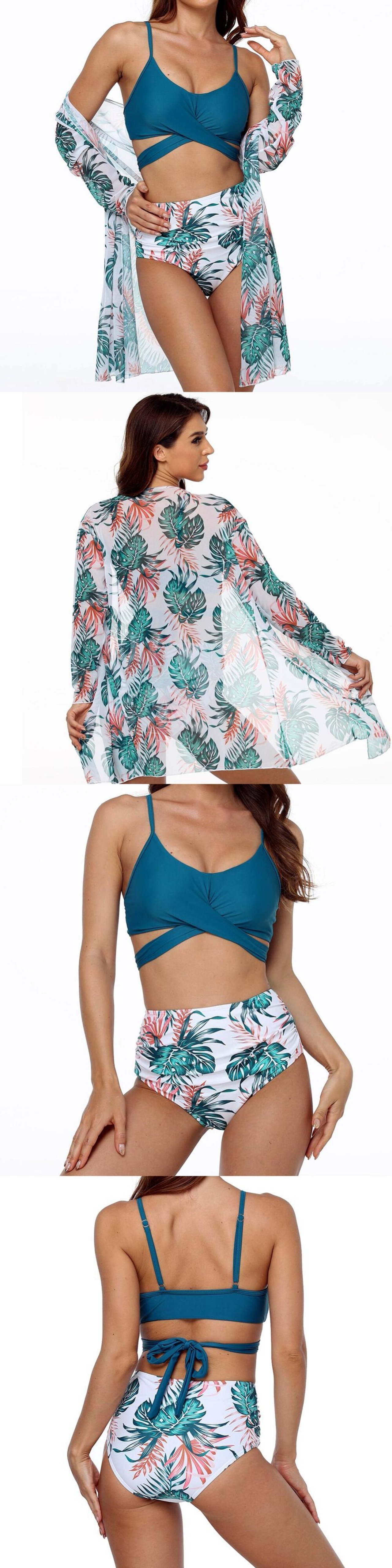 送料無料 2021セクシークロスビキニ女性ウエスト水着スリーピースビキニセットカバーアップ水着サマービーチウェアスイム 夏物 AE36655514351388733