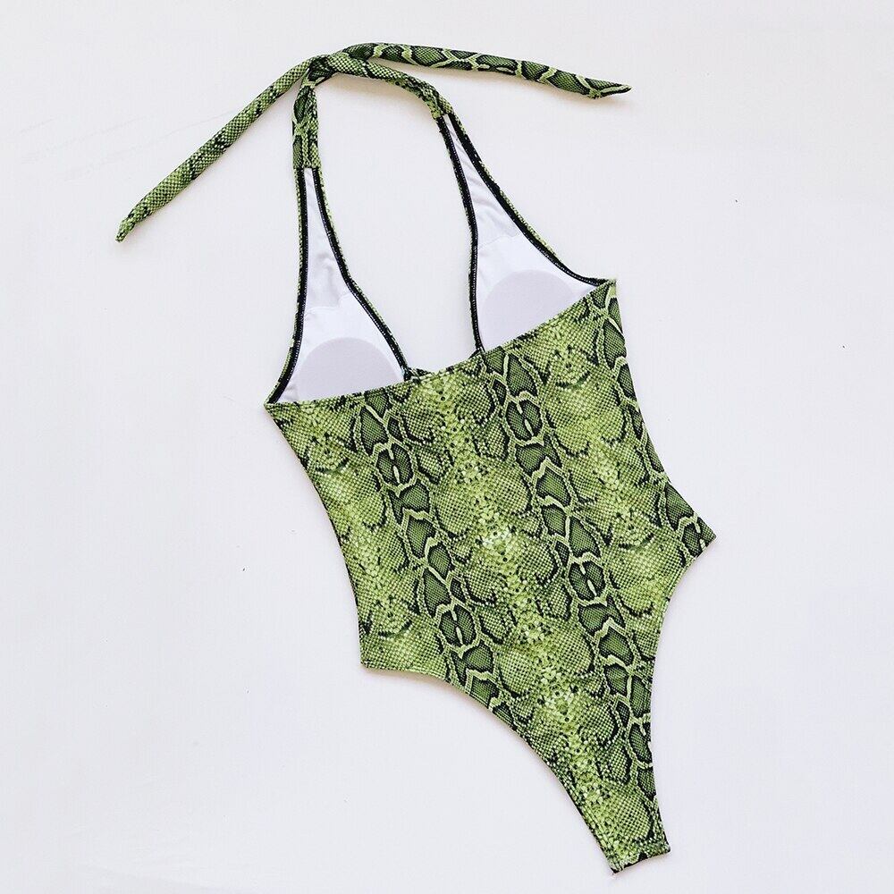 送料無料 スネークスキンプリントワンピース水着女性2021セクシーな中空アウト水着ボディスーツモノキニ入浴水着ビーチウェア AE36655556787769039