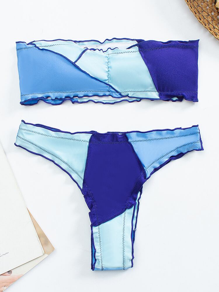 送料無料 2022セクシーなバンドービキニスプライシング水着女性水着ストラップレスビキニセット入浴者水着サマービーチウェア 夏物 AE36655569103709864
