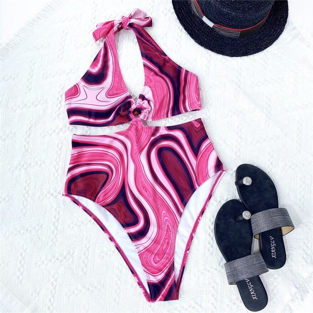 送料無料 2021セクシープリントワンピース水着女性水着ホルタープッシュアップモノキニ入浴水着サマービーチウェア水着レディー 夏物 AE36655545021104493
