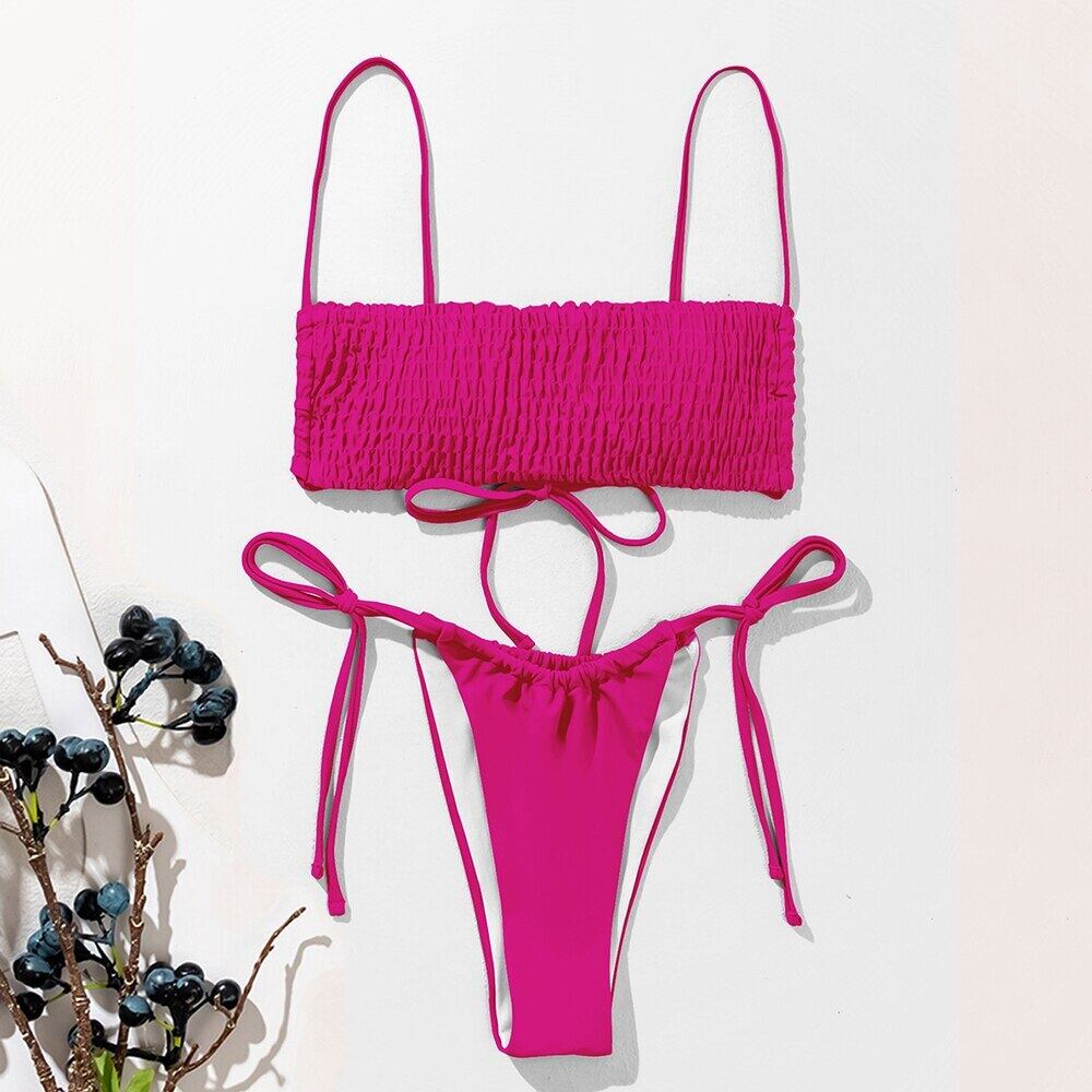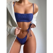 送料無料 2021セクシーなプリーツビキニソリッド水着女性水着2ピースビキニセット入浴水着ビーチウェア水着レディー ソリッドカラー AE36655598182633272
