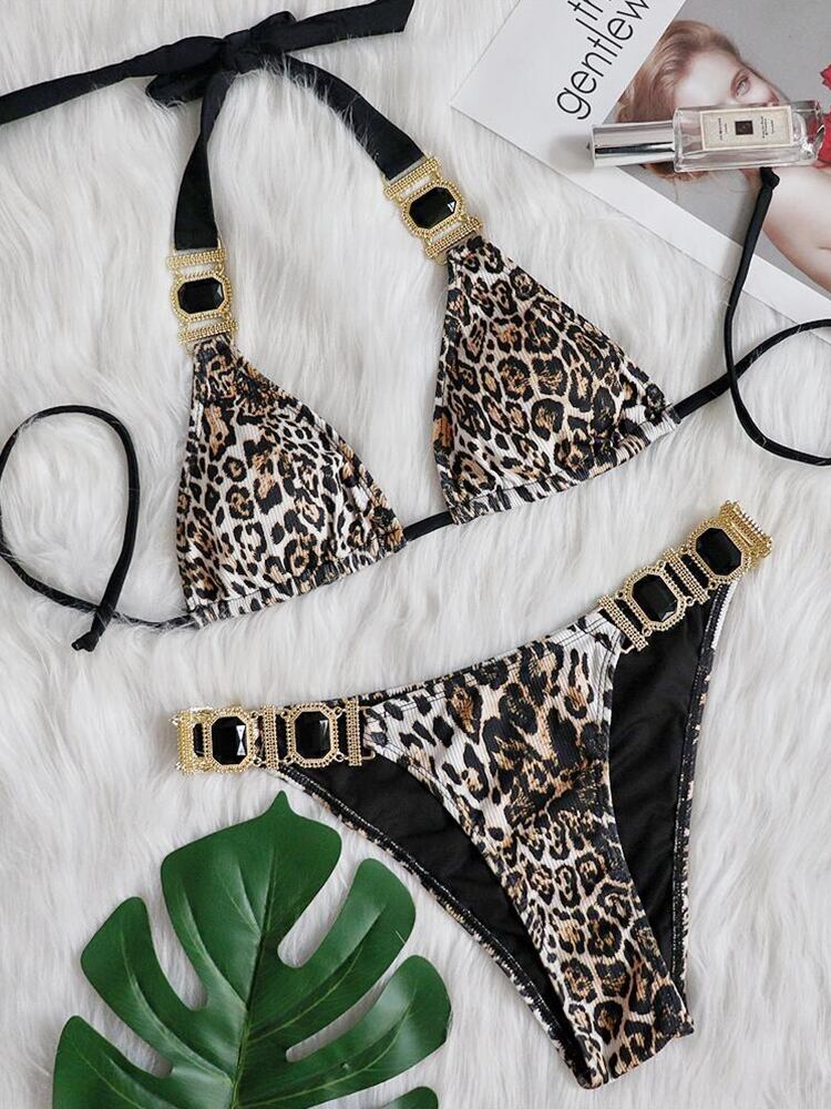 送料無料 2022セクシーなダイヤモンドビキニヒョウプリント水着女性水着ホルタープッシュアップビキニセットブラジルの水着ビーチウェア AE36655565225833549