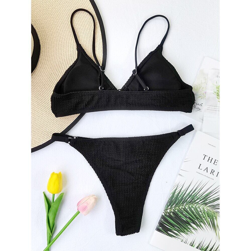 送料無料 2021セクシーなソリッドビキニリブ水着女性水着2ピースビキニセット入浴水着ビーチウェア水着レディー ソリッドカラー AE36655551395396286