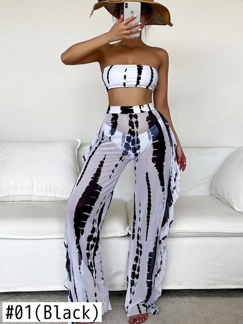 送料無料 2022年セクシープリントスリーピースビキニセットビーチパンツ水着女性水着バンドービキニ水着ビーチウェア AE36655518706410632