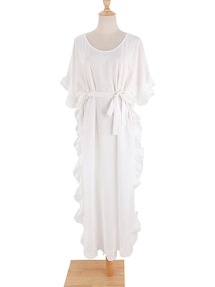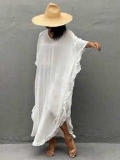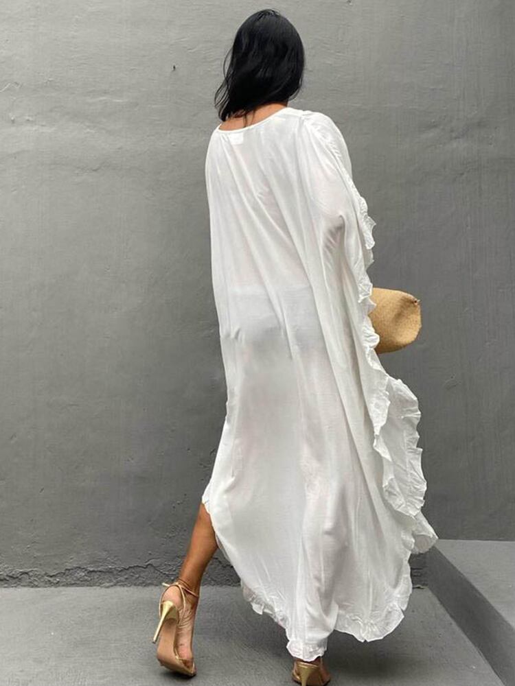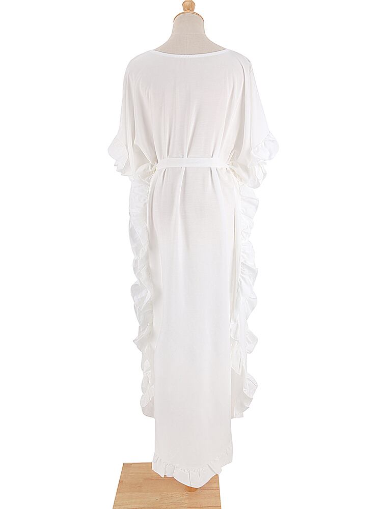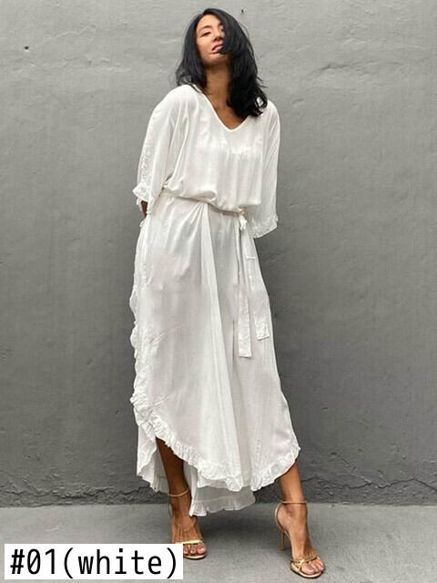 送料無料 2022セクシーなフリルビーチカバーアップ女性ビキニカバーアップロングスカートルーズローブ水着カバーアップ水着カバーアップアウターウェア AE36655529375966193
