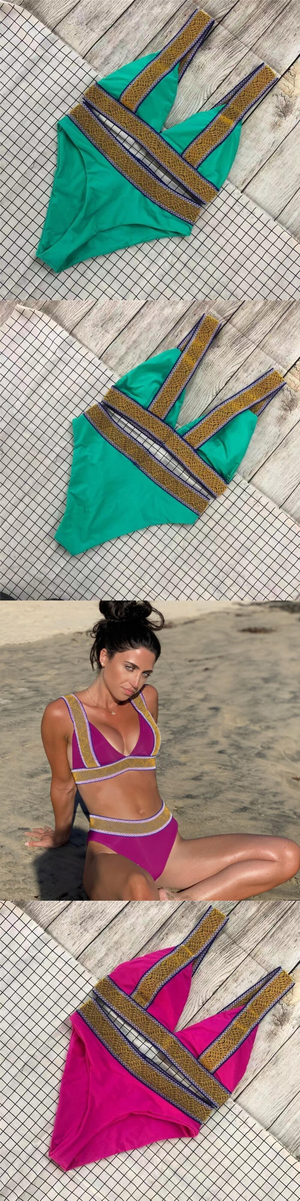 送料無料 ウエストビキニ2021セクシー水着女性パッチワーク水着ツーピースビキニセット水着サマービーチウェアXL 夏物 AE36655558747135811