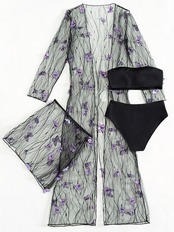 送料無料 2022セクシーなバンドービキニとバタフライメッシュ透明なビーチカバーアップ水着女性水着4ピースビキニセット AE36655579083126223
