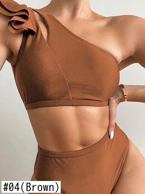 送料無料 ワンショルダービキニ 2023 女性フリル水着ソリッドウエスト水着パッド入り海水浴水着ビーチウェア ソリッドカラー AE121255587071870989