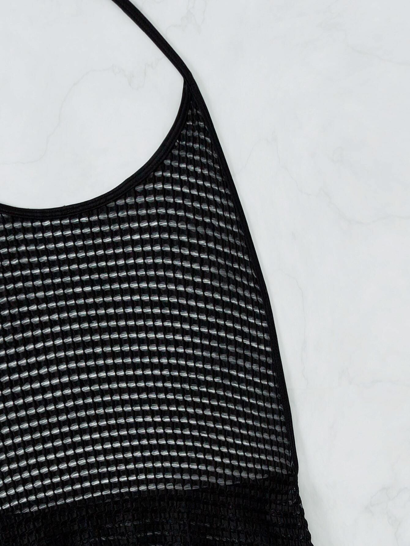 送料無料 中空ホルター ビキニ カバー アップ 2023 女性黒ビーチ スカート水着ドレス水着 ブラック AE121255550293819183