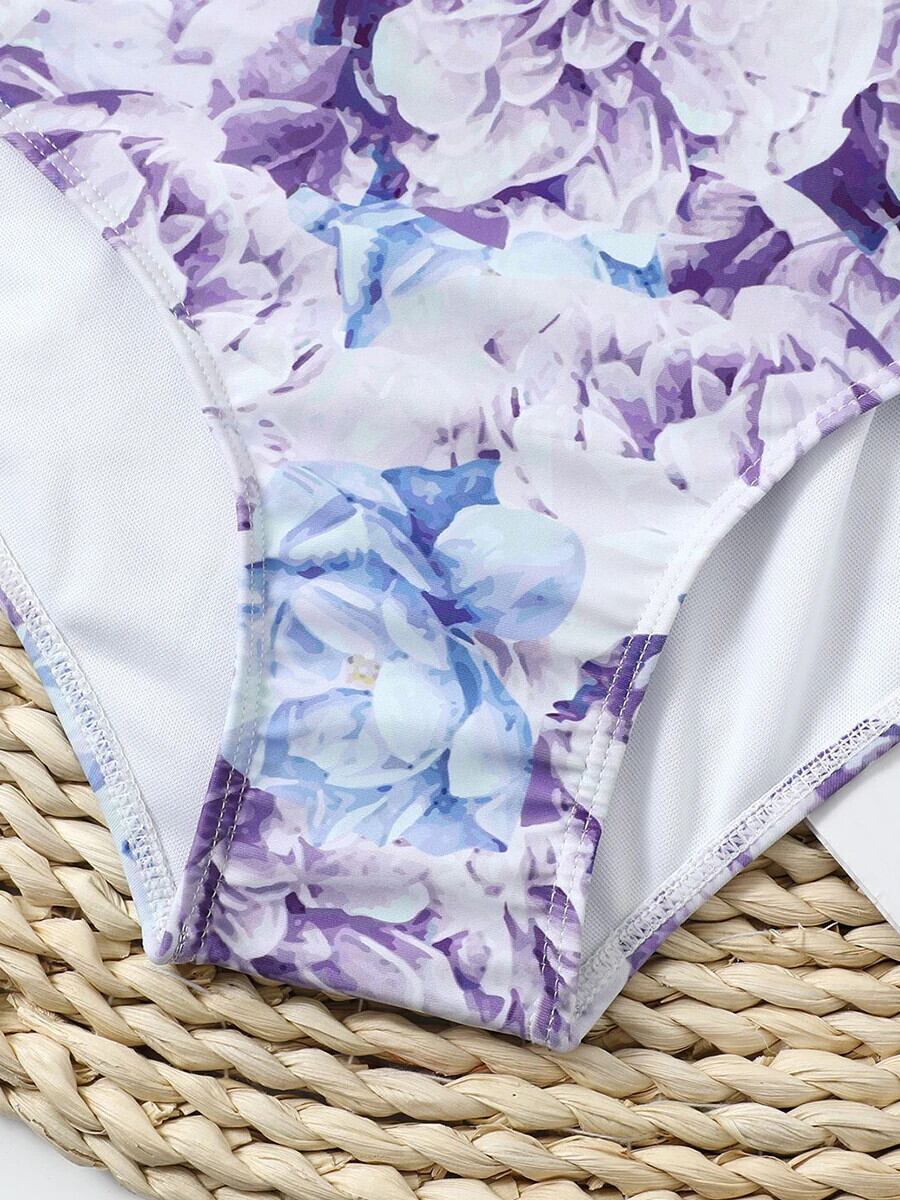 送料無料 2023 プリント水着ワンピースフリル背中の開いた水着女性花柄水着水着夏のビーチウェアボディスーツ サマー 夏物 AE121255527328280300