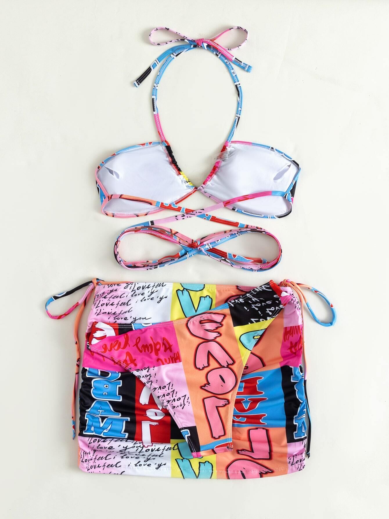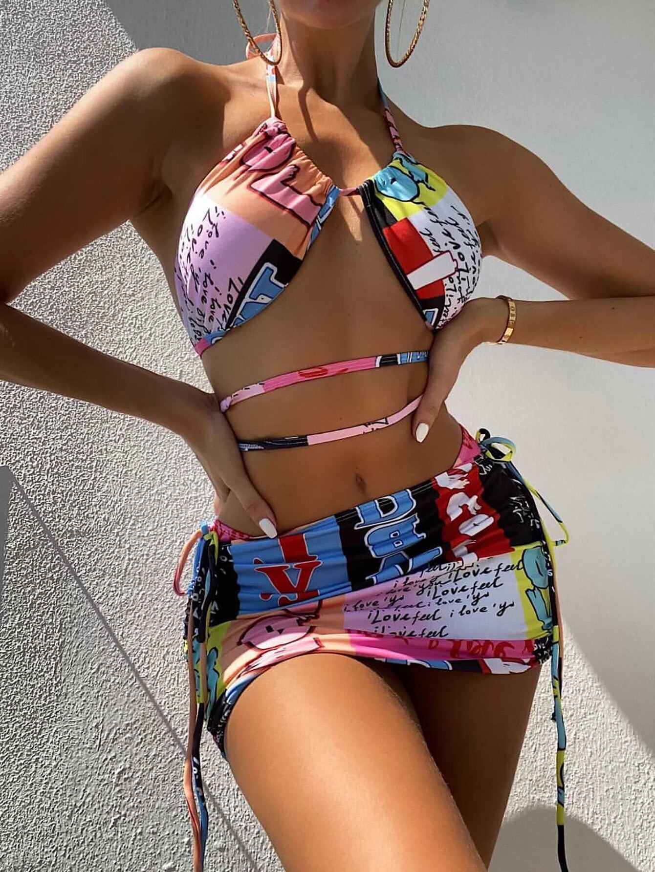 送料無料 2023 ホルタービキニ & カバーアップスカート水着女性ブラジルのセクシーな水着パッド入り水着水泳ビーチウェア夏 サマー 夏物 AE121255536097049095