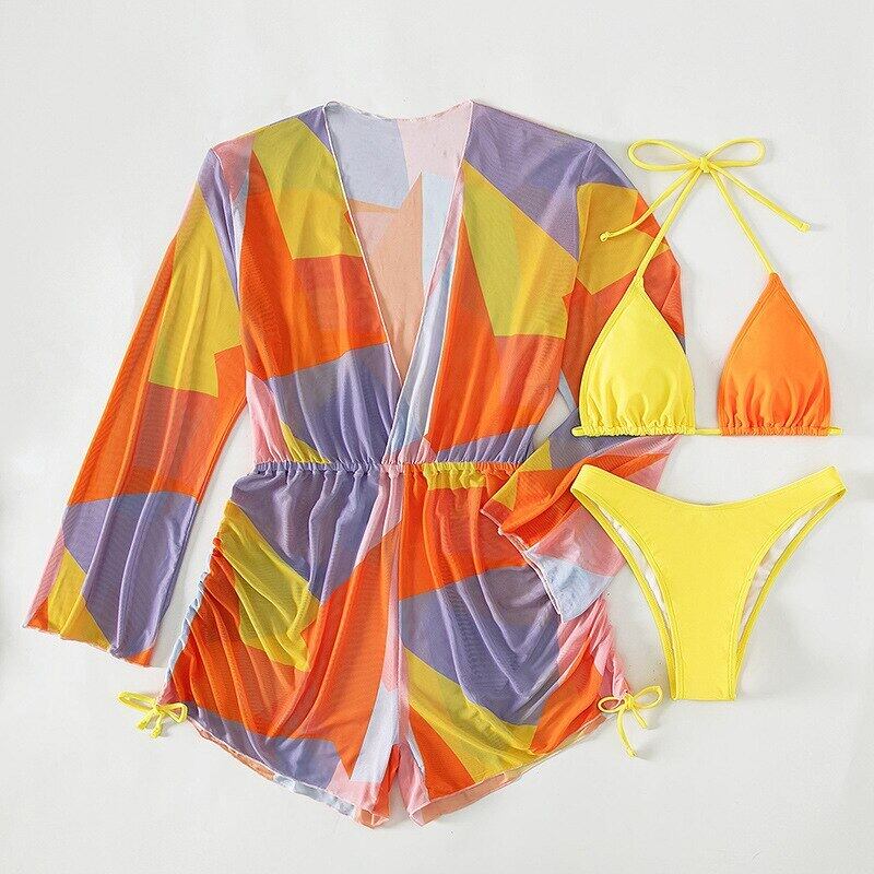 送料無料 3 個プリント三角ビキニ 2023 女性カバーアップセクシーな水着水着海水浴水着夏 サマー 夏物 AE12125553319356159