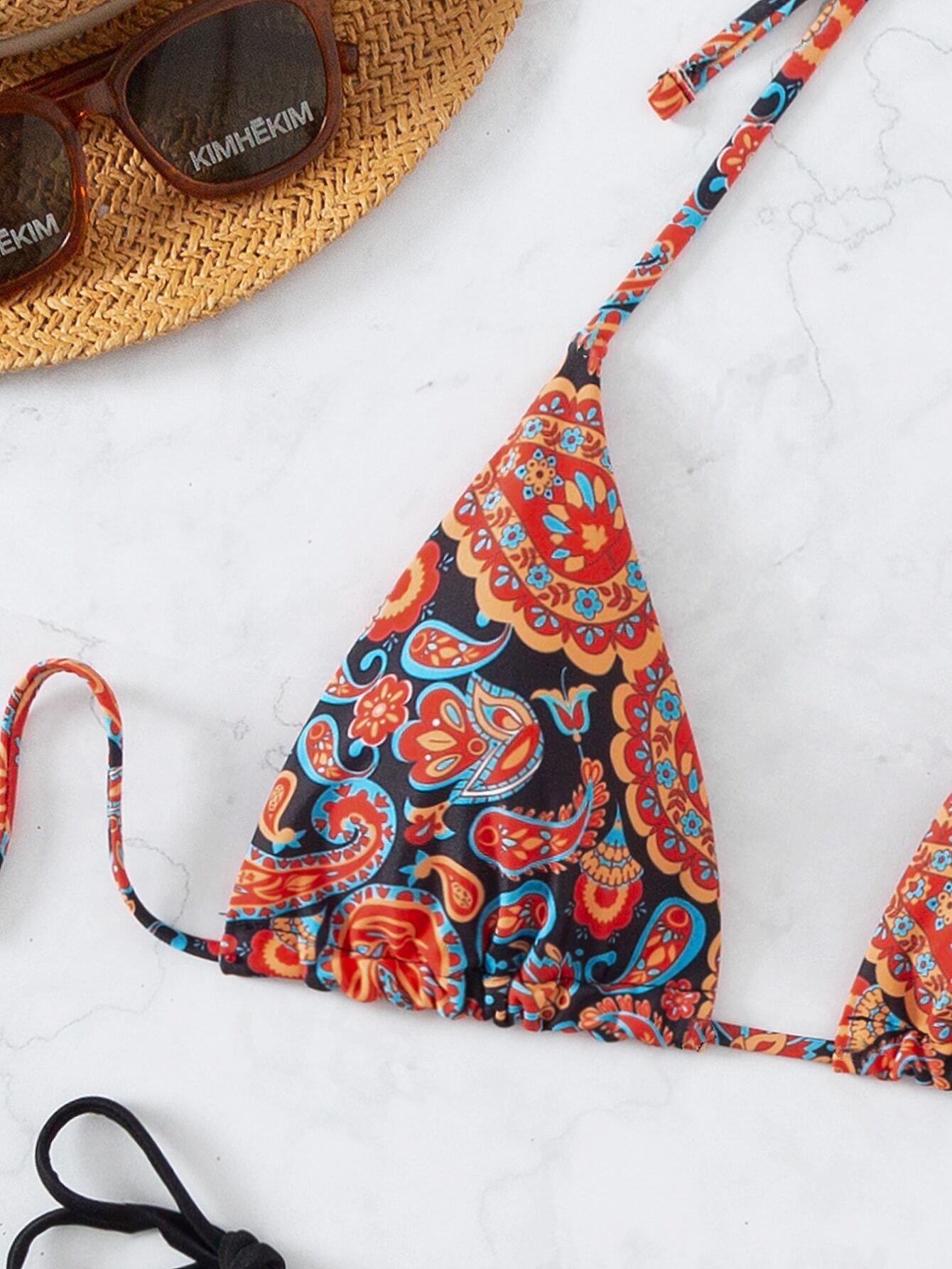 送料無料 プリントストリングビキニセット 2023 女性のセクシーなホルター水着三角水着海水浴水泳水着ビーチウェア AE121255563825882106