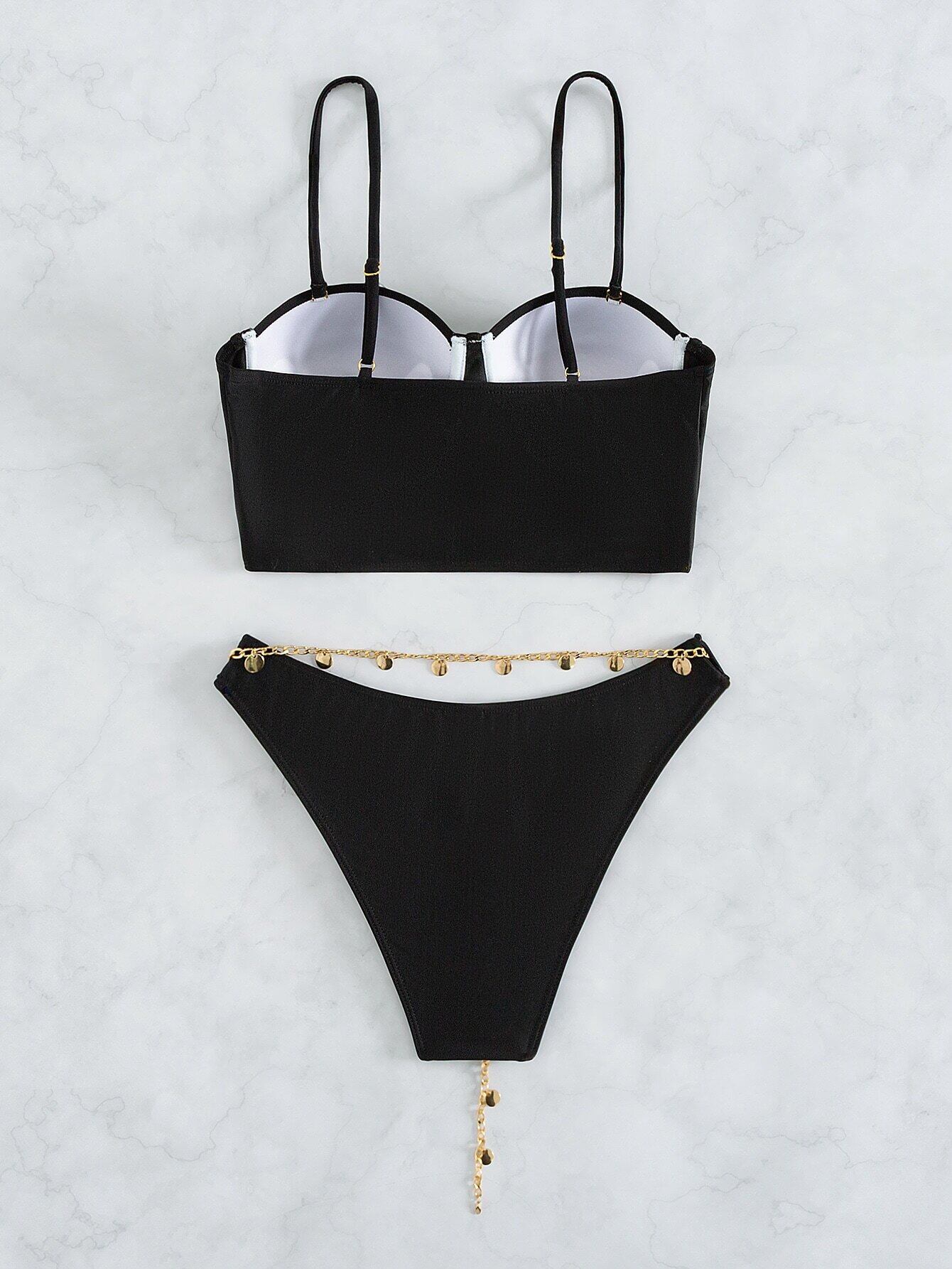 送料無料 チェーンリンクプッシュアップビキニ 2023 ブラジル水着女性黒水着セクシーな水着水泳夏のビーチウェア ブラック サマー 夏物 AE121255546580021933