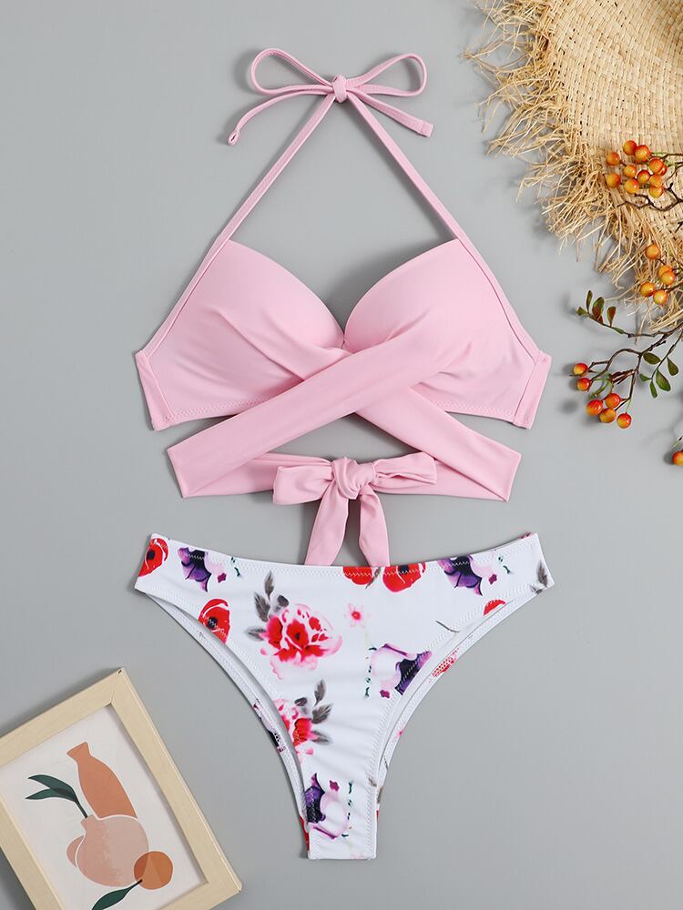送料無料 プッシュアップビキニ 2023 女性十字花水着タイバック水着セクシーな水泳水着夏のビーチウェア サマー 夏物 花柄 AE121255546121216312