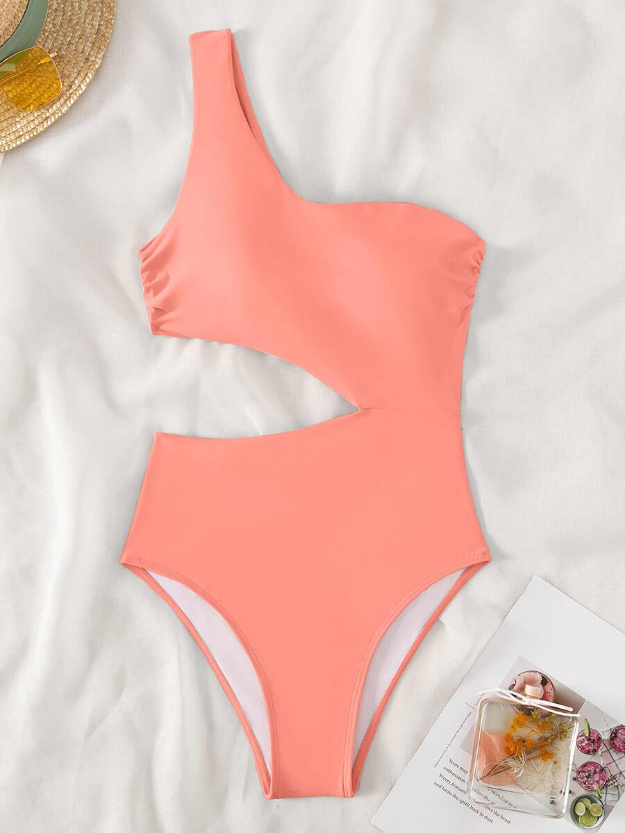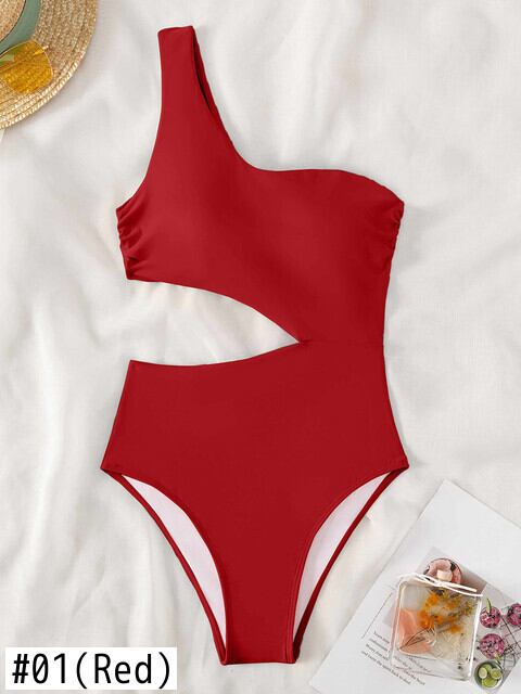 送料無料 2023 中空固体水着女性ワンピースパッド入り水着ワンショルダーボディスーツ水着海水浴者ビーチウェア ソリッドカラー AE121255540626210184