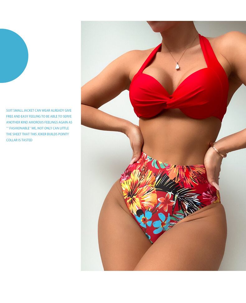 送料無料 セクシーなホルタービキニ 2023 女性花柄プリント水着プッシュアップ水着ウエスト水着水泳夏のビーチウェア サマー 夏物 AE121255578221050727