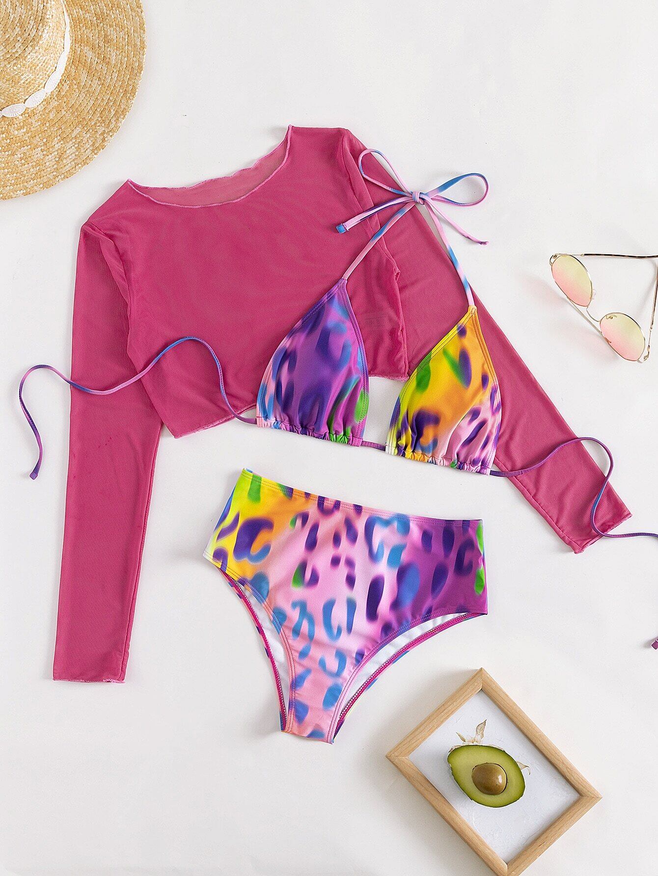 送料無料 3 個ヒョウビキニウエスト三角水着トップホルター水着女性 2023 水着ビーチウェア AE121255596339391272