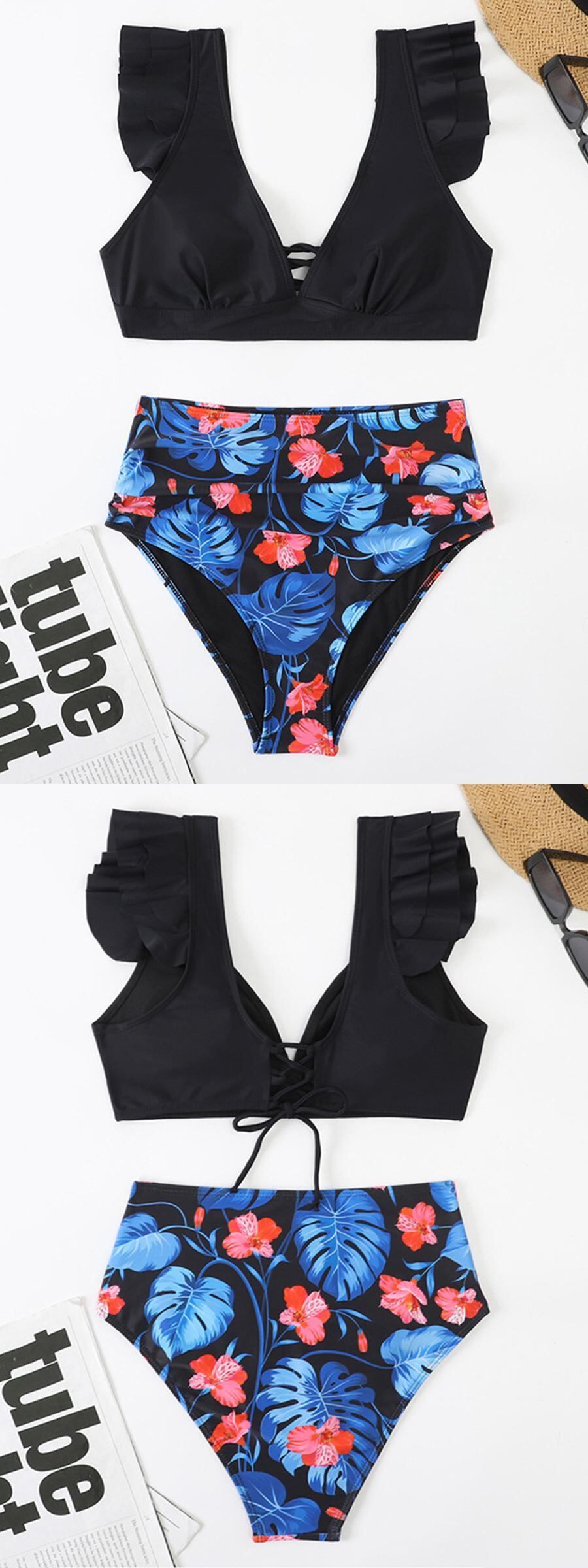 送料無料 ウエストビキニ 2023 女性フリル水着花柄水着パッド入り海水浴客水着水泳ビーチウェア夏 サマー 夏物 AE121255513913916496