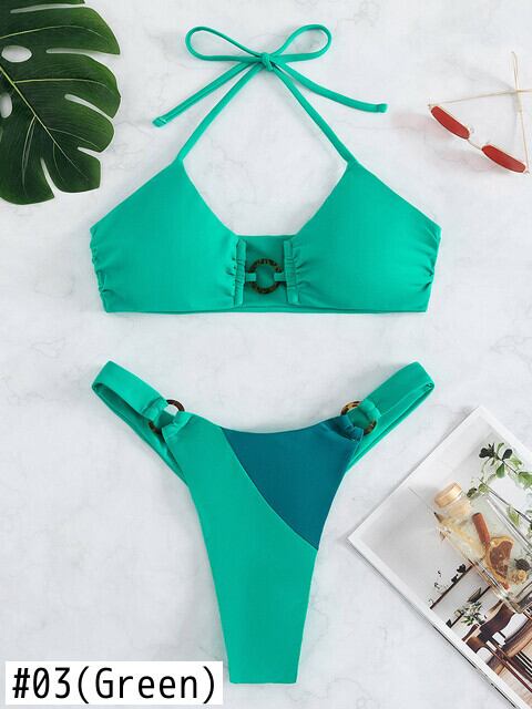 送料無料 リングリンクビキニセット 2023 ブラジル Tバック水着女性パッチワーク水着セクシーな水着水泳夏のビーチウェア サマー 夏物 AE121255551828521419