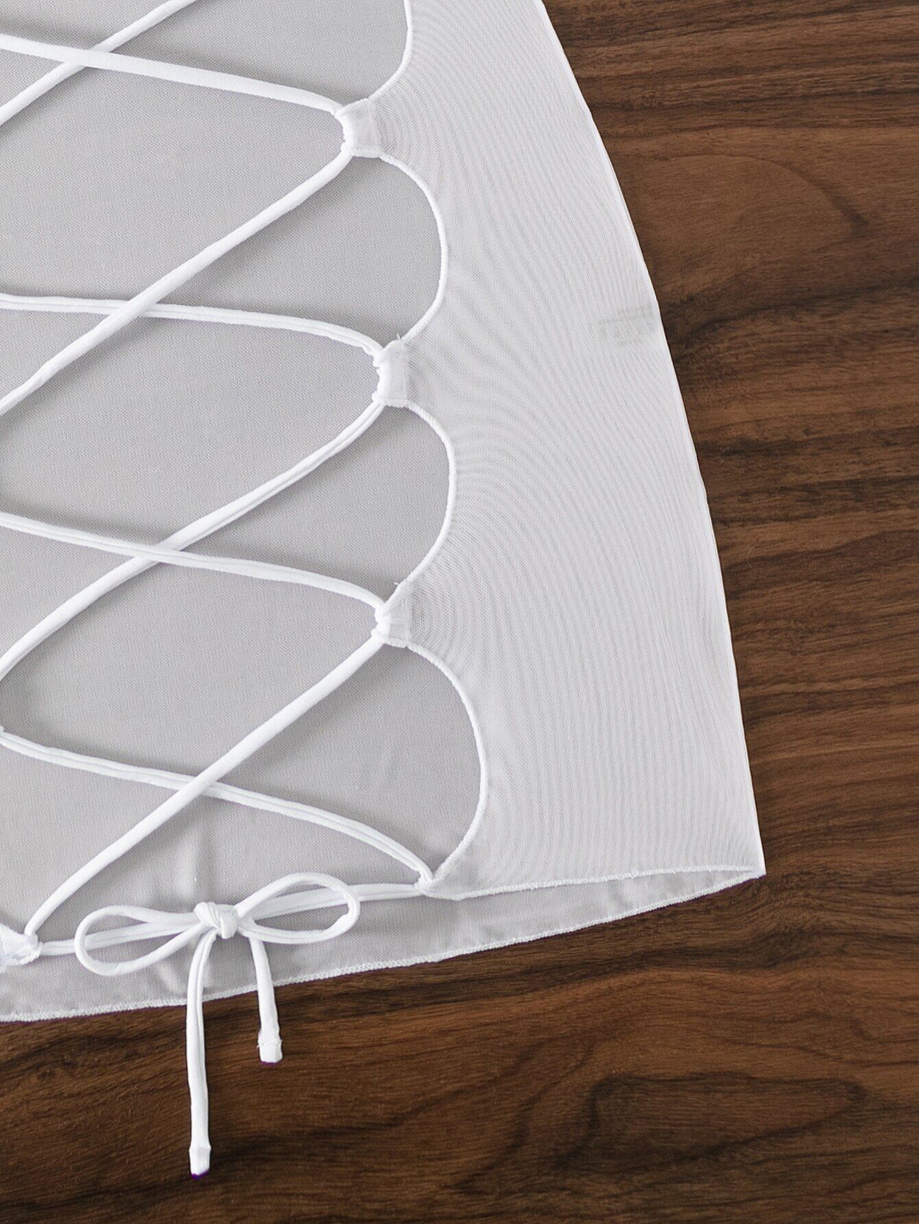 送料無料 レースアップフロントホルターホワイトカバーアップ 2023 ビーチウェア海水浴者水泳水着女性固体 ソリッドカラー AE121255597035525098