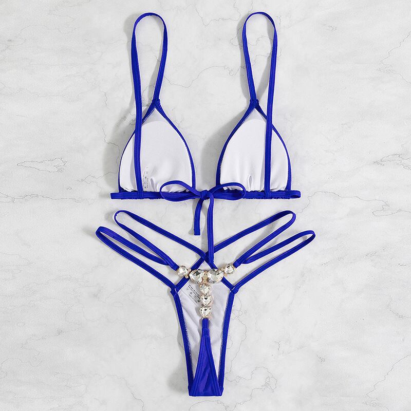送料無料 宝石装飾三角ビキニ 2023 Tバック水着ブルー水着女性海水浴者水着ビーチウェア夏 サマー 夏物 AE121255516662870494