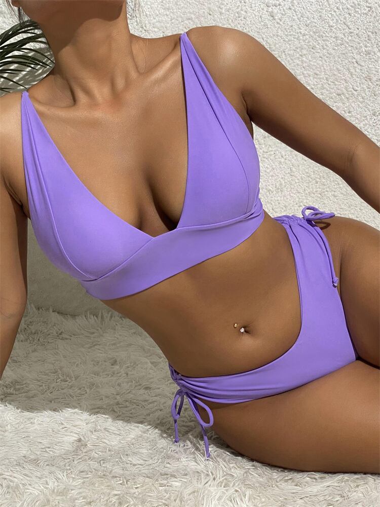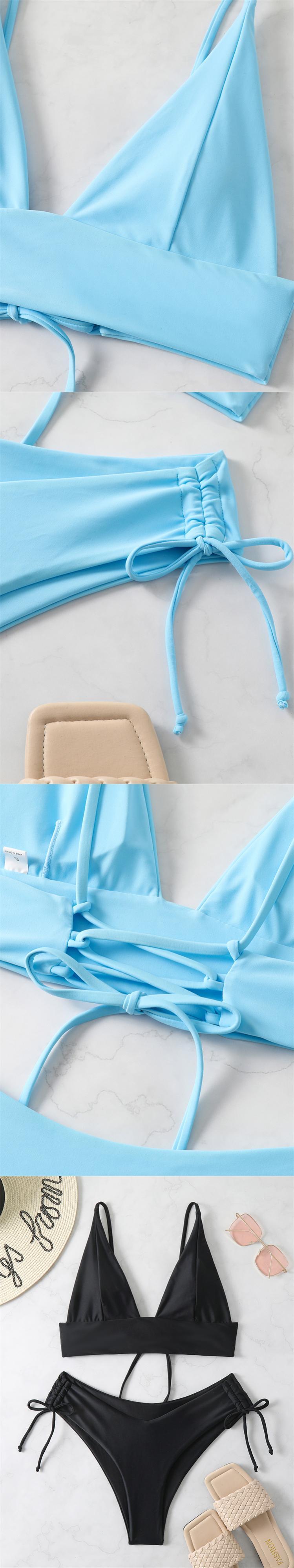 送料無料 マイクロビキニ女性水着 2023 固体レースアップビキニセット Tバック水着 V ネック背中の開いた夏のビーチ水着 サマー 夏物 Vネック ソリッドカラー AE12127767524953250782