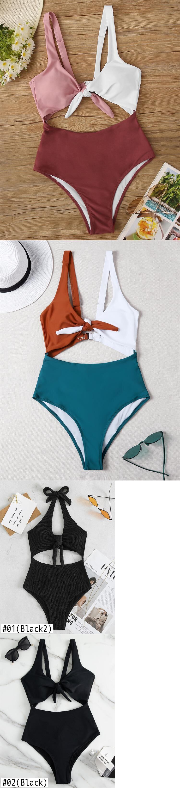 送料無料 ワンピース女性水着 2023 固体中空アウト水着包帯弓セクシーなボディスーツモノキニ夏のビーチ水着 リボン サマー 夏物 ソリッドカラー AE12127767591961398428