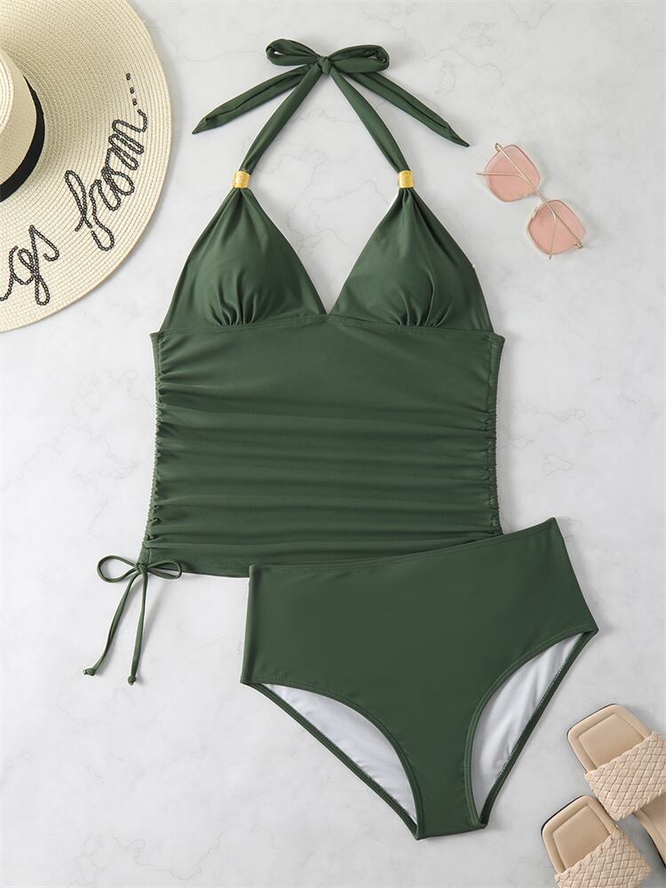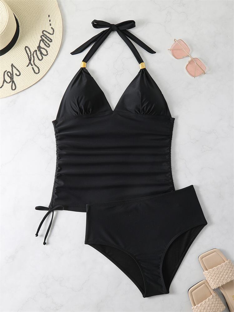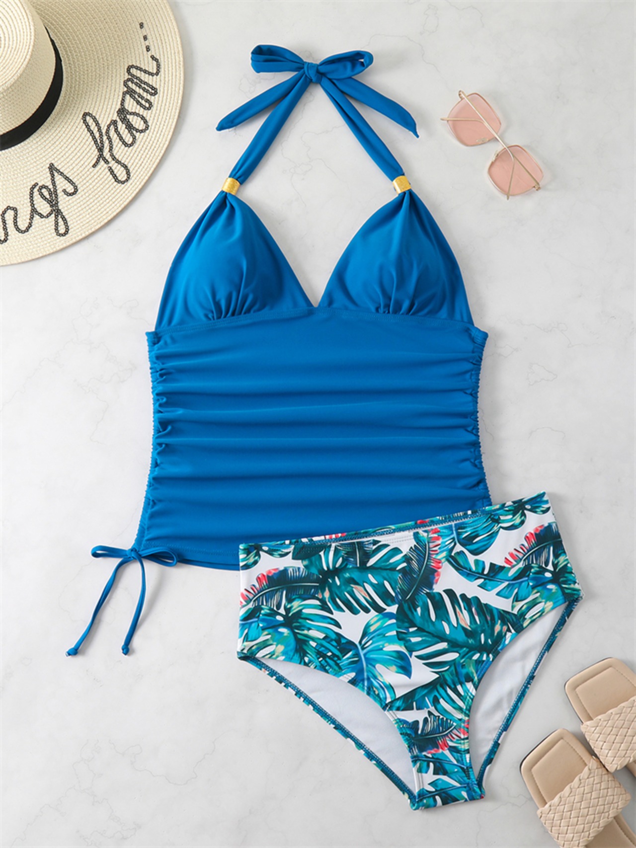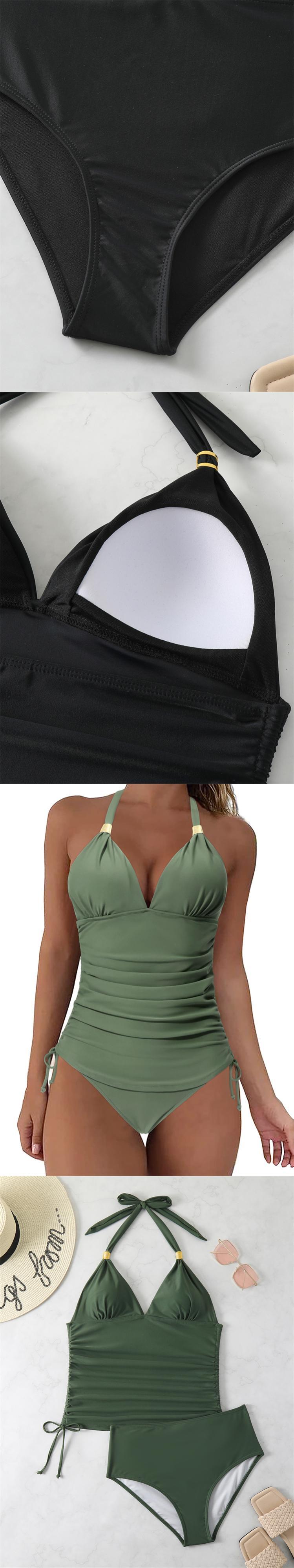 送料無料 ビキニ女性水着 2023 ソリッドとプリントカバーベリービキニセットウエスト水着シャーリングビーチウェア水着 ソリッドカラー AE12127767594933822968