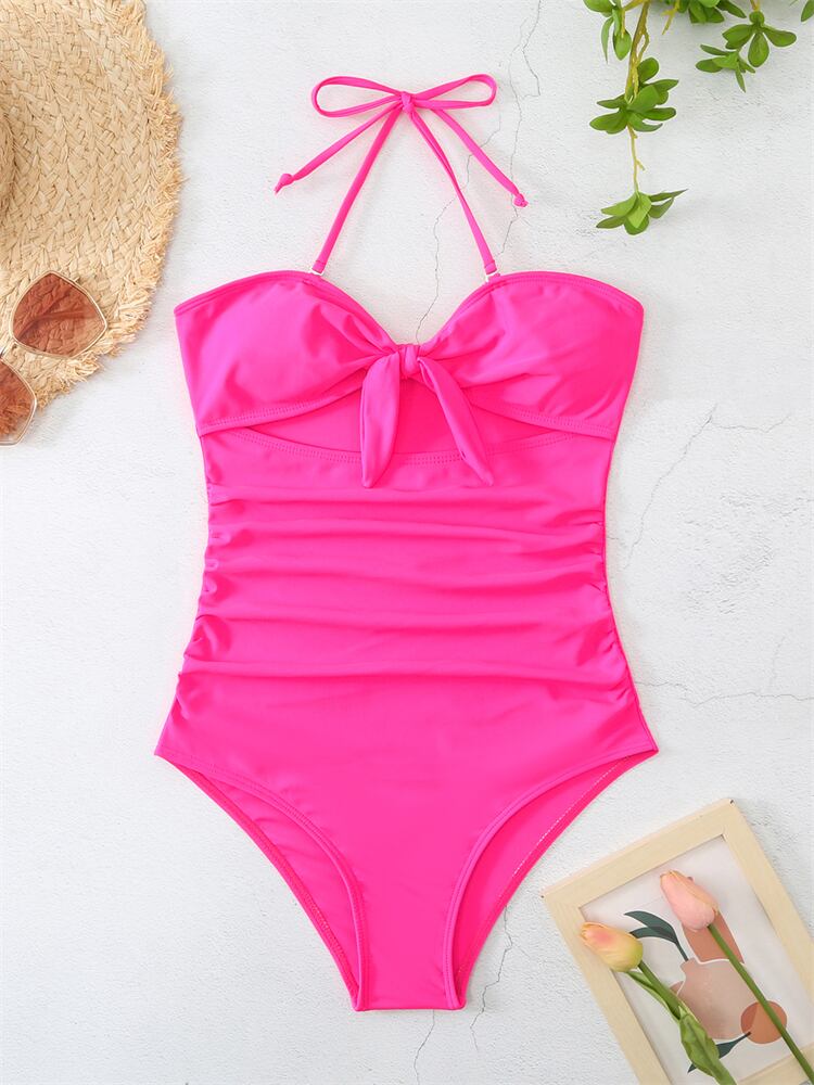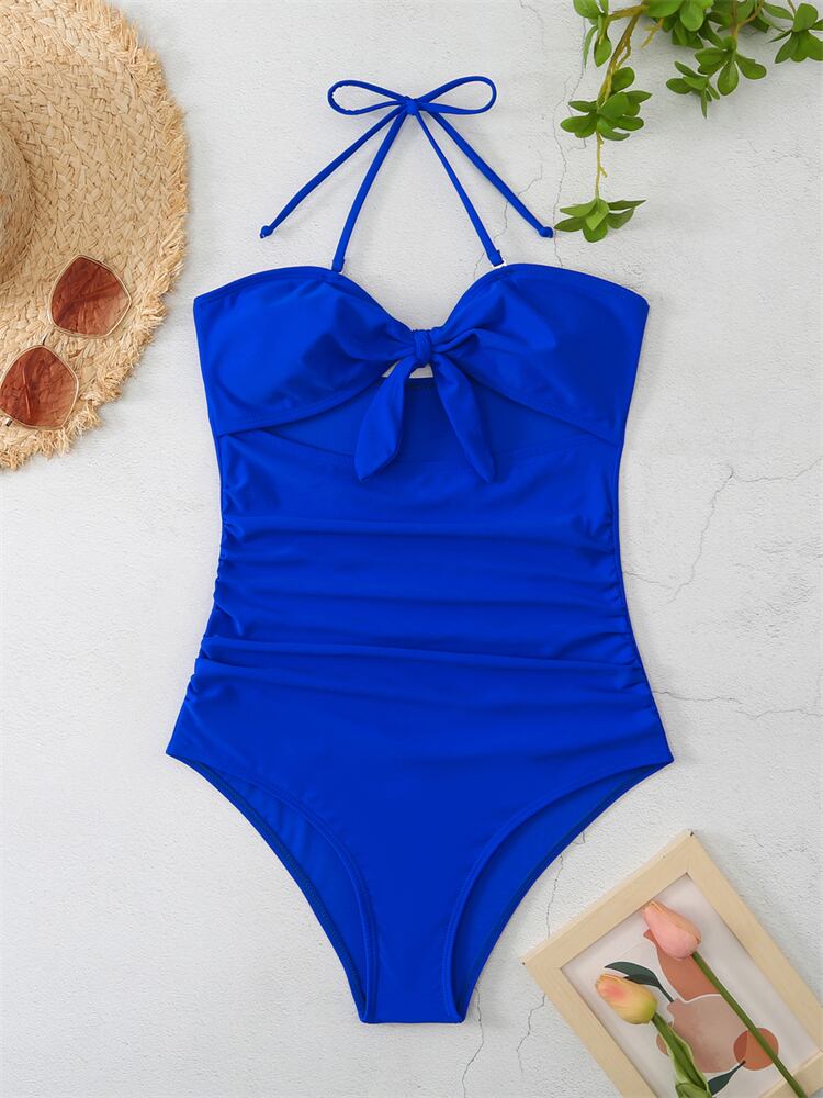 送料無料 ワンピース女性水着 2023 ソリッドホルターネック水着プッシュアップセクシーなボディスーツモニキニ夏のビーチウェア水着 リボン サマー 夏物 ソリッドカラー AE12127767553203270119