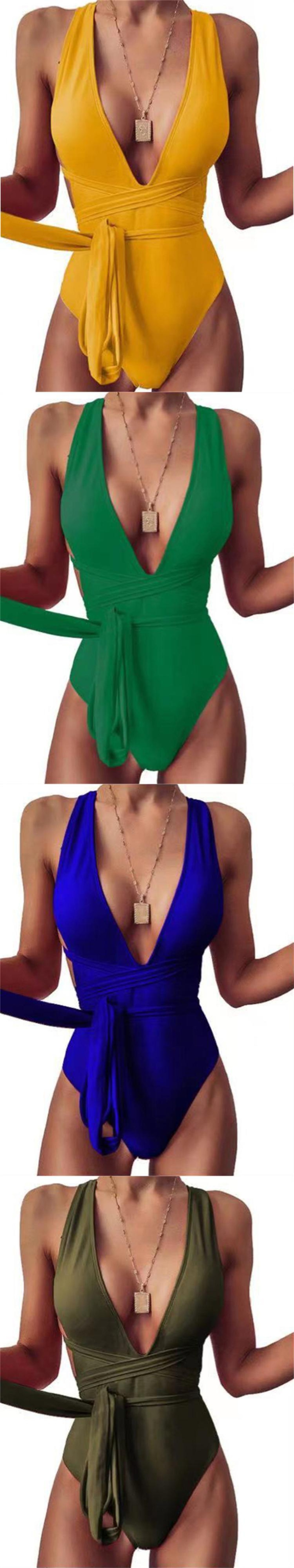 送料無料 ワンピース女性水着 2023 ソリッド V ネック水着クロスレースアップセクシーなボディスーツモノキニ夏のビーチ水着 サマー 夏物 Vネック ソリッドカラー AE12127767521961205650