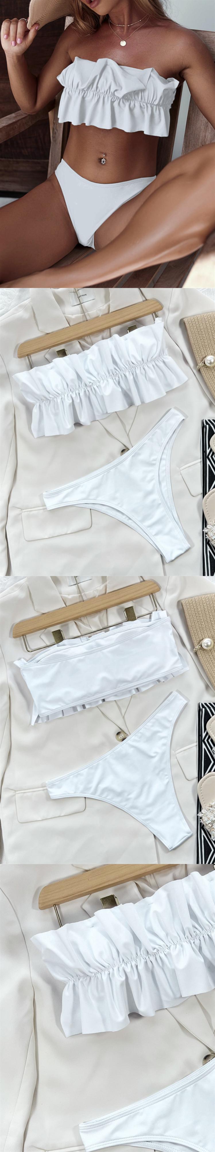 送料無料 ビキニ女性水着 2023 ソリッドフリルバンドーマイクロビキニセットセクシーな Tバック水着夏のビーチウェア水着 サマー 夏物 ソリッドカラー AE12127767573410761932