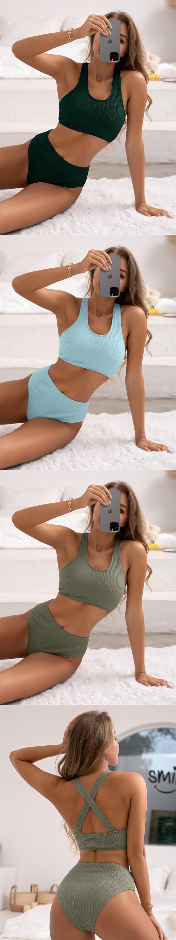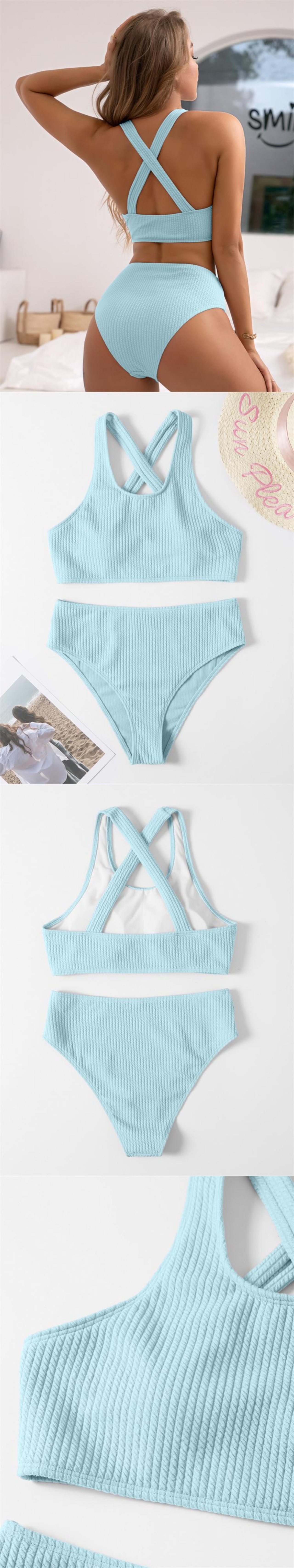 送料無料 ビキニ女性水着 2023 固体リブビキニセットセクシーなウエスト水着ツーピース夏のビーチウェア水着 サマー 夏物 ソリッドカラー AE12127767559254094044