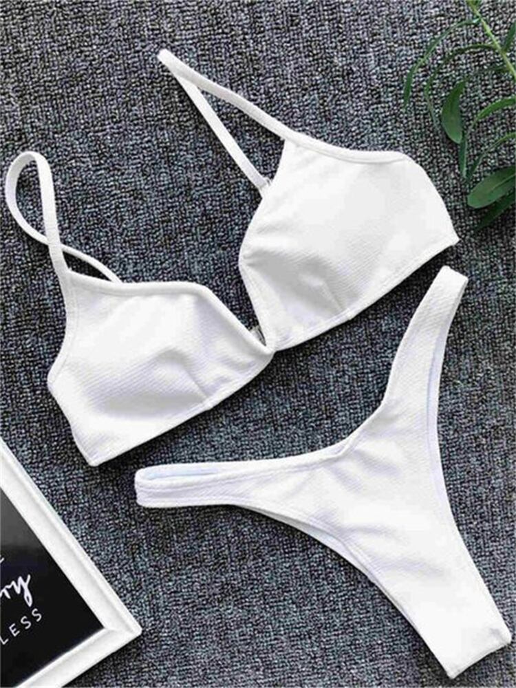 送料無料 ビキニ女性水着 2023 黒の V ネックリブビキニセットセクシーな Tバック水着プッシュアップ夏のビーチウェア水着 ブラック サマー 夏物 Vネック AE12127767516026541700