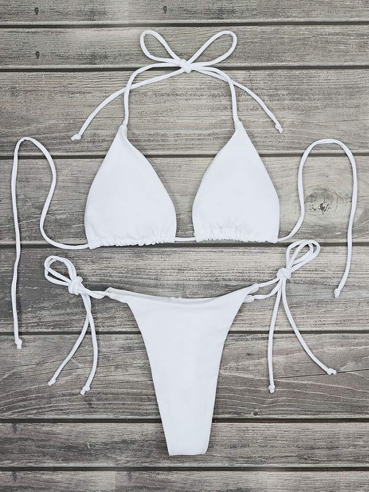 送料無料 ビキニセット Tバックストリングマイクロビキニ女性水着 2023 レースアップ白ツーピース水着夏のビーチ水着 ホワイト サマー 夏物 AE1212776751134768674