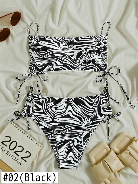 送料無料 セクシーなビキニ女性水着 2023 ストライプバンドゥ水着レースアップウエストビキニセット夏のビーチウェア水着 サマー 夏物 AE12127767521575667139