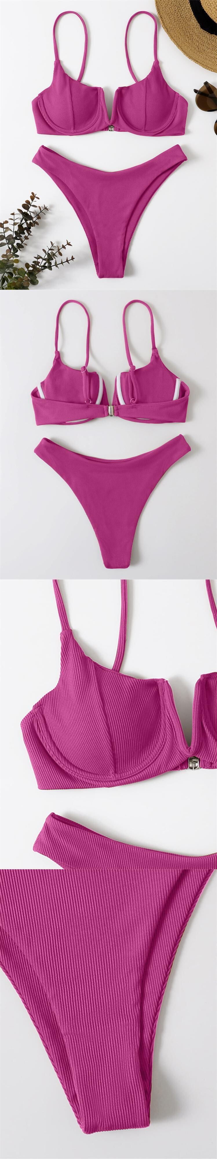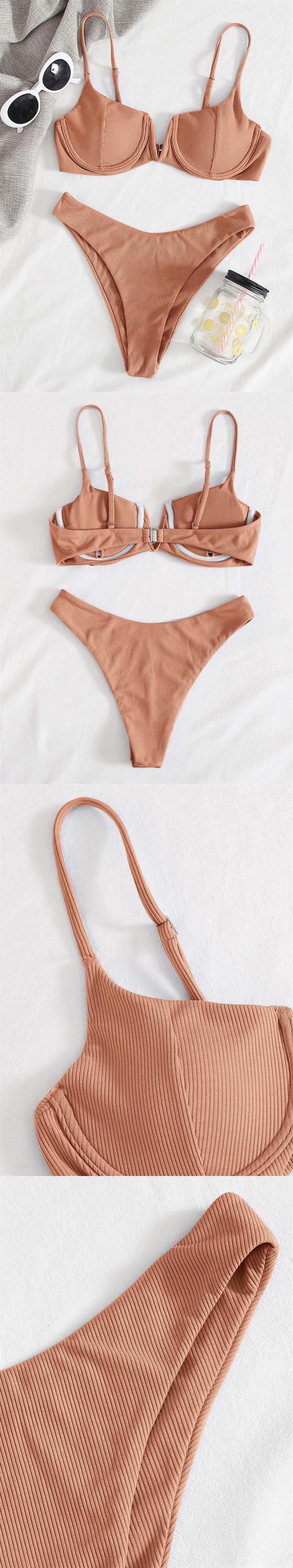 送料無料 ビキニ女性水着 2023 ソリッドリブプッシュアップビキニセットセクシーな Tバック水着 V ネック夏のビーチウェア水着 サマー 夏物 Vネック ソリッドカラー AE1212776751049591270