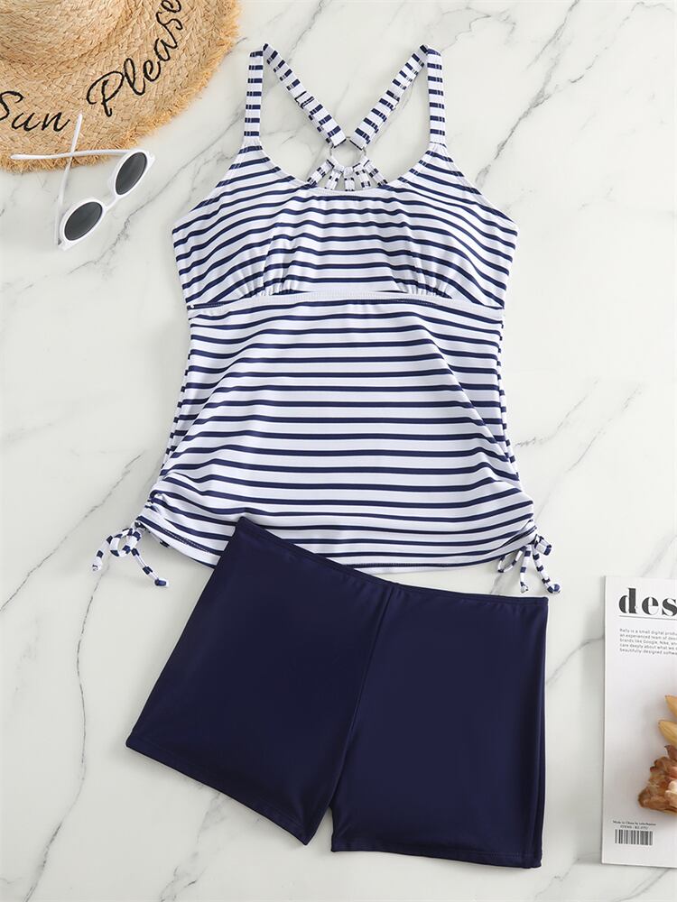 送料無料 ビキニ女性水着 2023 ソリッドプリントビキニセットボクサーパンツ水着夏タンキニツーピースビーチ水着 サマー 夏物 ショーツ ブルマー ソリッドカラー AE12127767578597348313