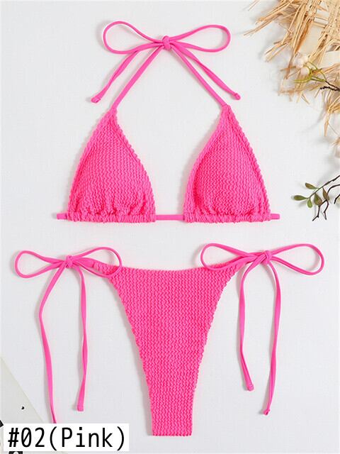 送料無料 マイクロビキニ女性水着 2023 固体レースアップビキニセットリブ水着セクシーな背中の開いた夏のビーチ水着 サマー 夏物 ソリッドカラー AE12127767551935455829