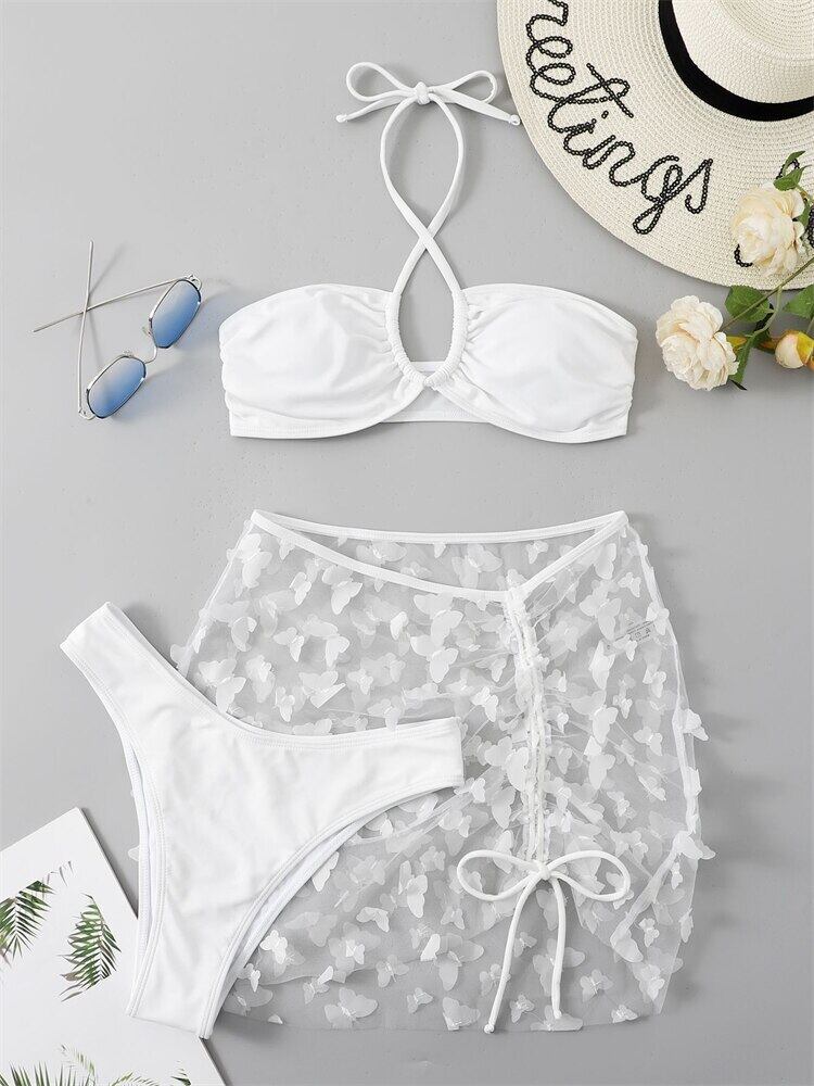 送料無料 マイクロビキニ女性水着 2023 ホワイトホルタービキニセット Tバック水着 3 ピースビーチカバーアップ夏水着 サマー 夏物 AE12127767518819231460