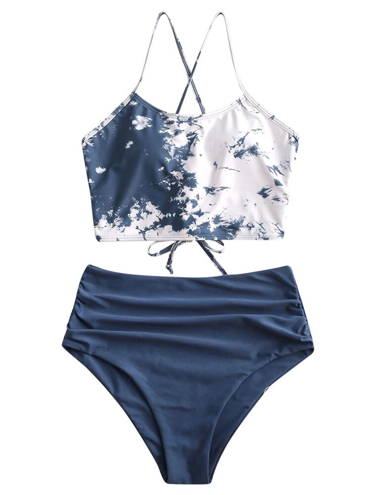 送料無料 ビキニ女性水着 2023 タイダイスリングビキニセットウエスト水着セクシーなレースアップ夏のビーチウェア水着 サマー 夏物 AE12127767549400483819