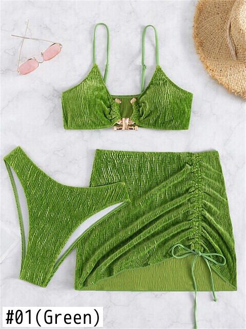 送料無料 ビキニ女性水着 2023 グリーンリブビキニセット Tバック水着セクシーなスリング 3 ピース夏のビーチウェア水着 サマー 夏物 AE12127767515837217247