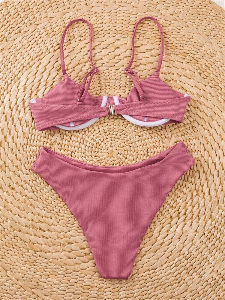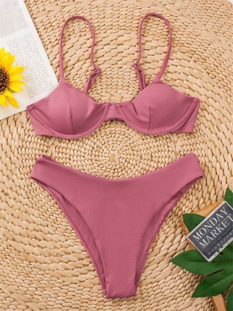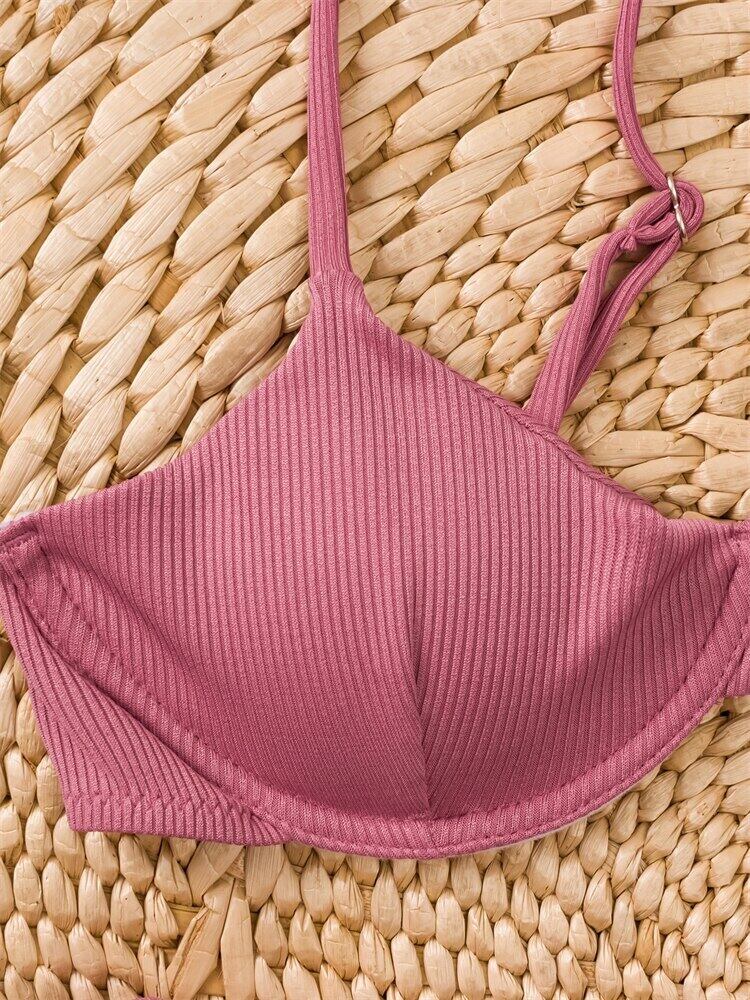 送料無料 ビキニ女性水着 2023 ソリッドスリングリブビキニセットセクシーな Tバック水着夏 2 ピースビーチウェア水着 サマー 夏物 ソリッドカラー AE12127767551167749874