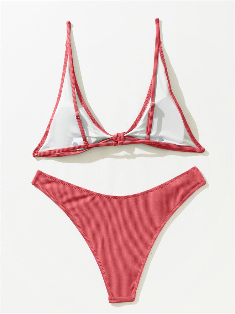 送料無料 ビキニ女性水着 2023 ソリッドリブビキニセットセクシーな Tバック水着 V ネック夏 2 ピースビーチウェア水着 サマー 夏物 Vネック ソリッドカラー AE12127767510281834604