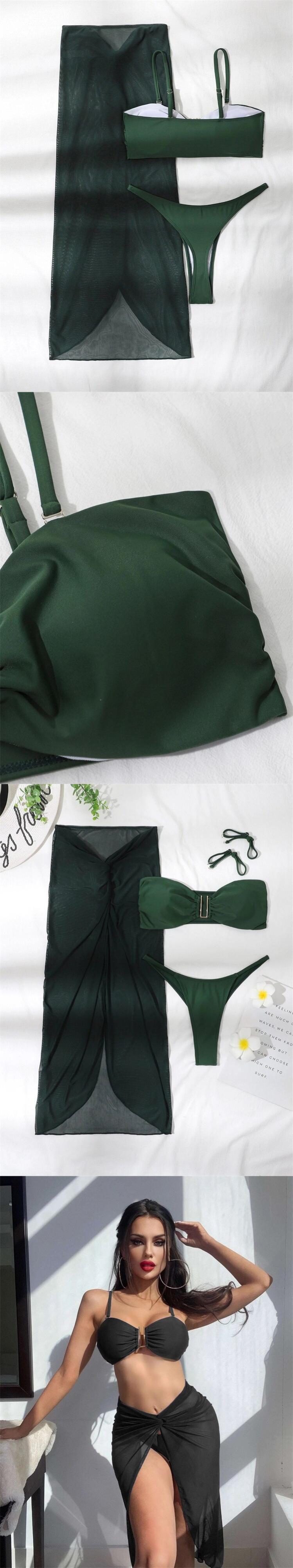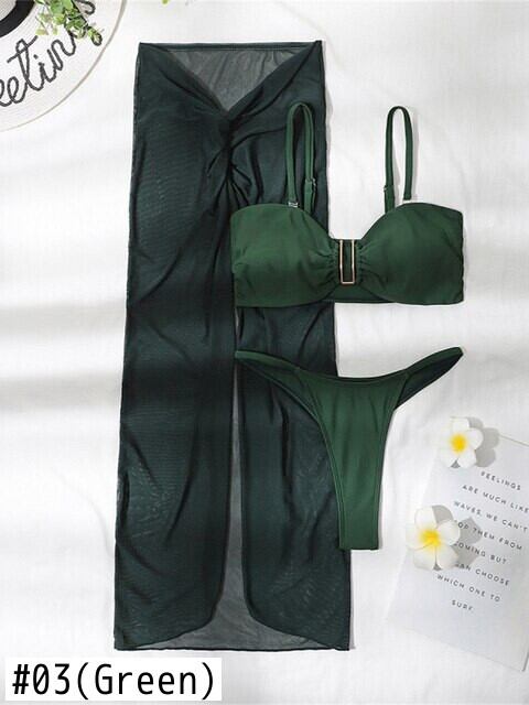 送料無料 ビキニセクシーな女性水着 2023 ソリッドスリングビキニセット 3 ピース水着 Tバック夏のビーチカバーアップ水着 サマー 夏物 ソリッドカラー AE12127767584112058795